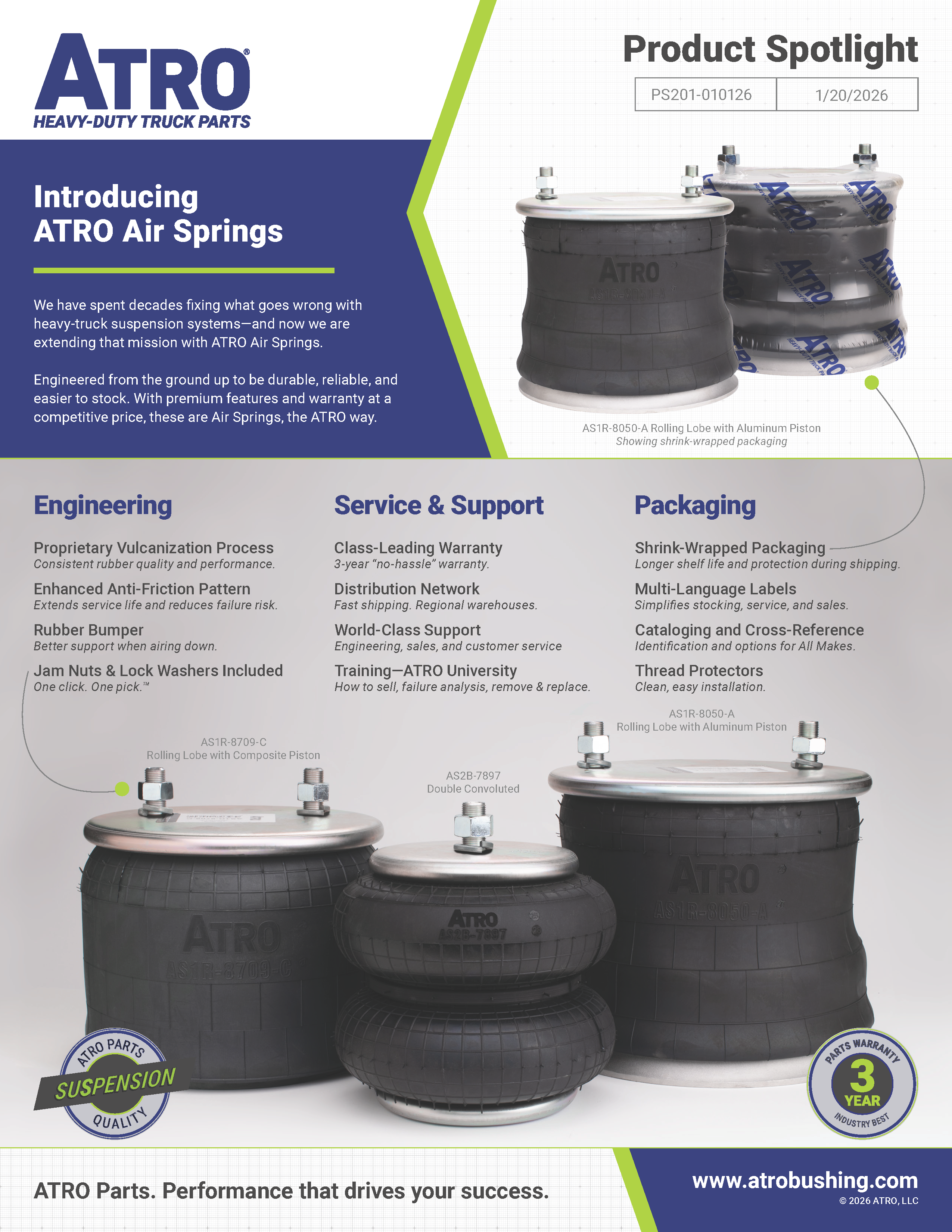 We have spent decades fixing what goes wrong with heavy-truck suspension systems—and now we are extending that mission with ATRO Air Springs.